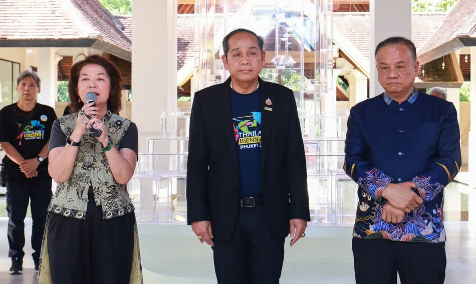 คุณอัญชลี วานิช เทพบุตร นายกสมาคมศิลป์ภูเก็จ พร้อมด้วย นายเรวัต อารีรอบ นายก อบจ.ภูเก็ต